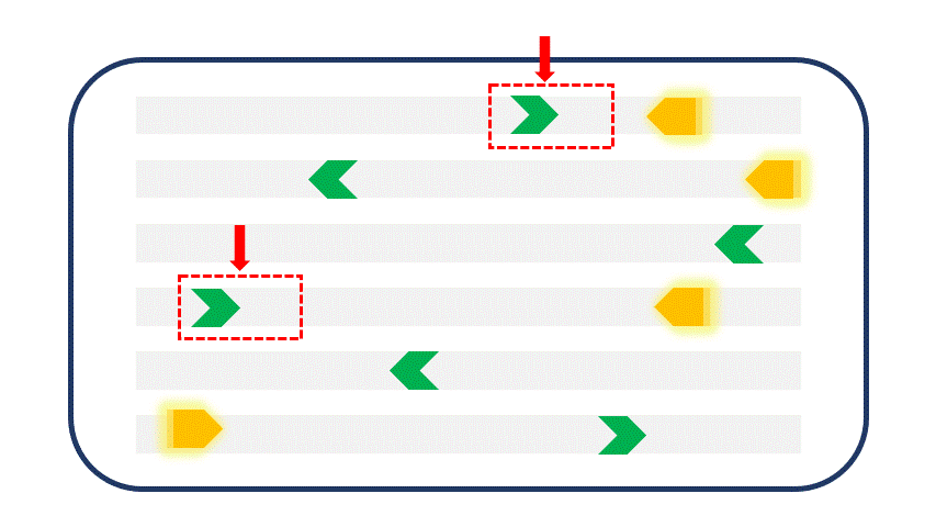 -> 상대적으로 바깥쪽에 있는 초록이들은 바로 노랑이를 만나기 때문에 빠르게 보시고 판단을 내리셔야 합니다.