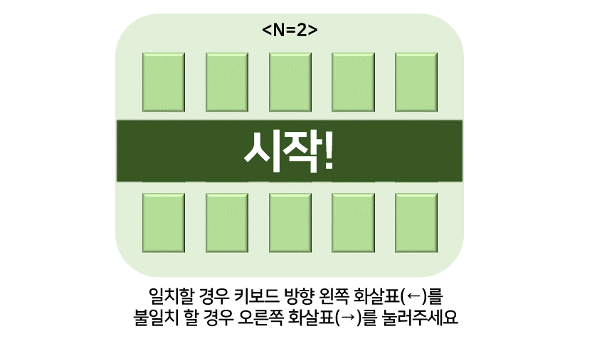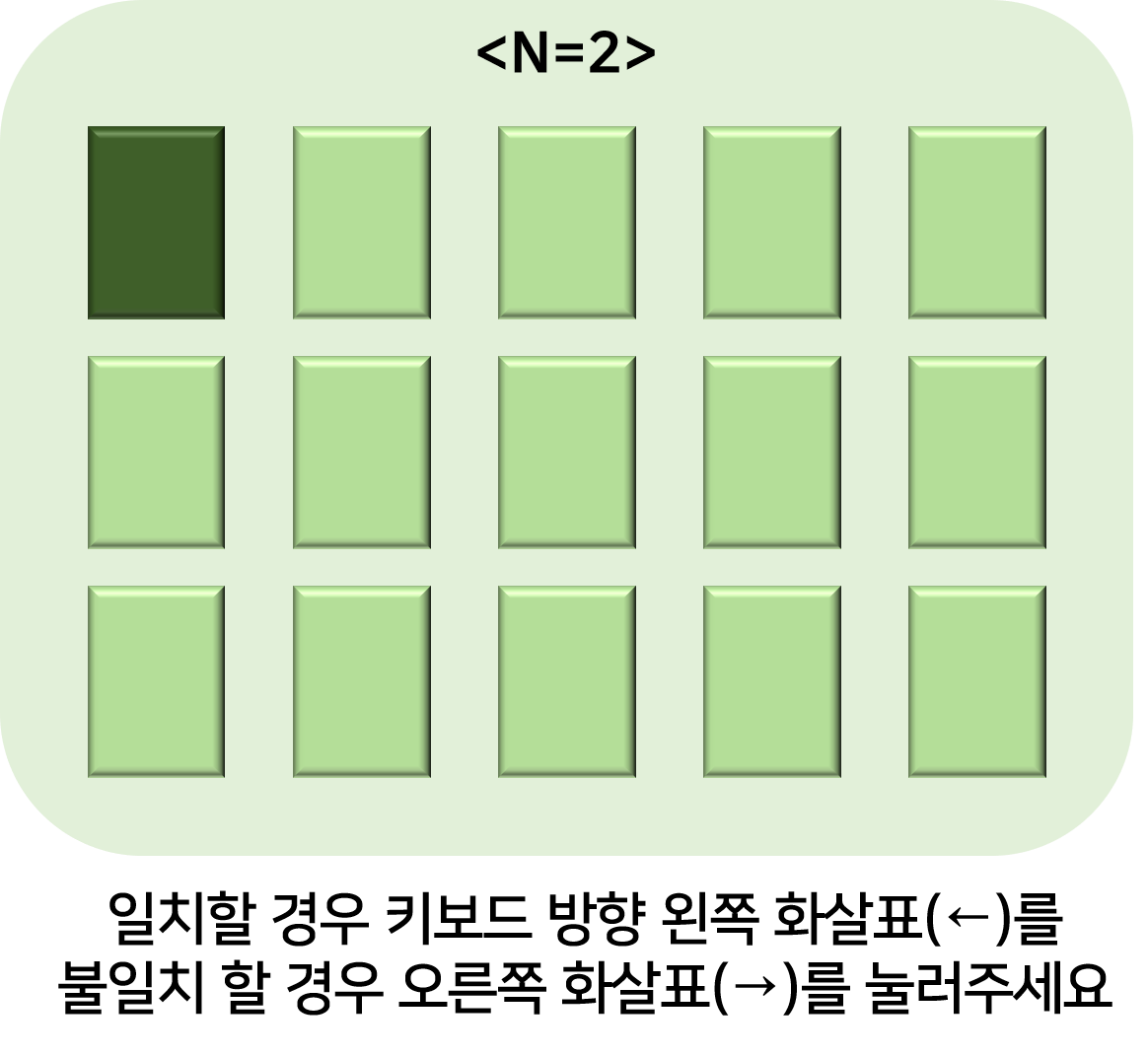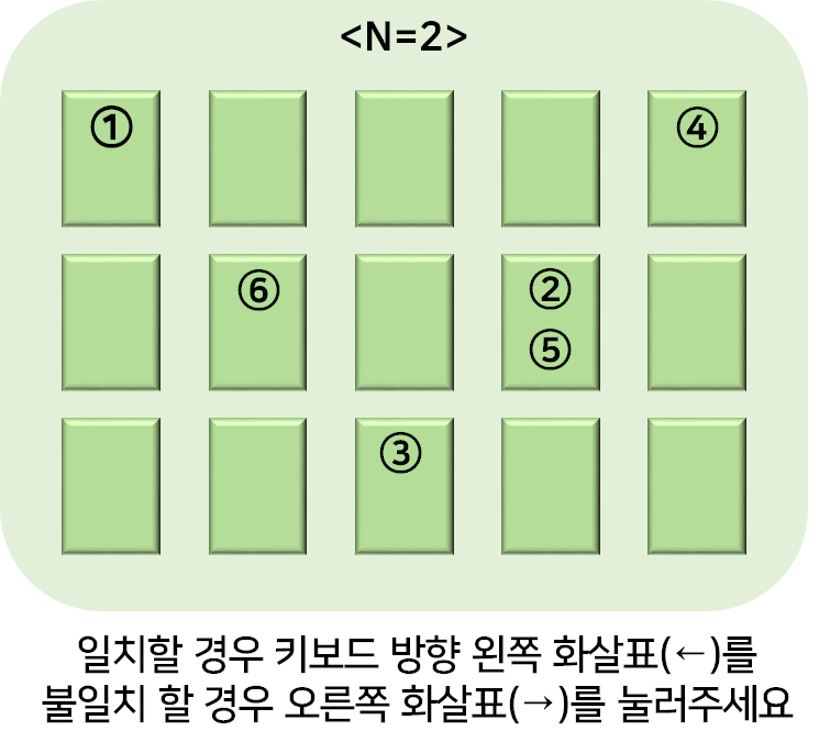 -> 새로 나오는 카드의 일치여부(<-, ->)를 입력한 다음, 암기했던 카드들의 조합에 새로 암기를 하시면 됩니다.