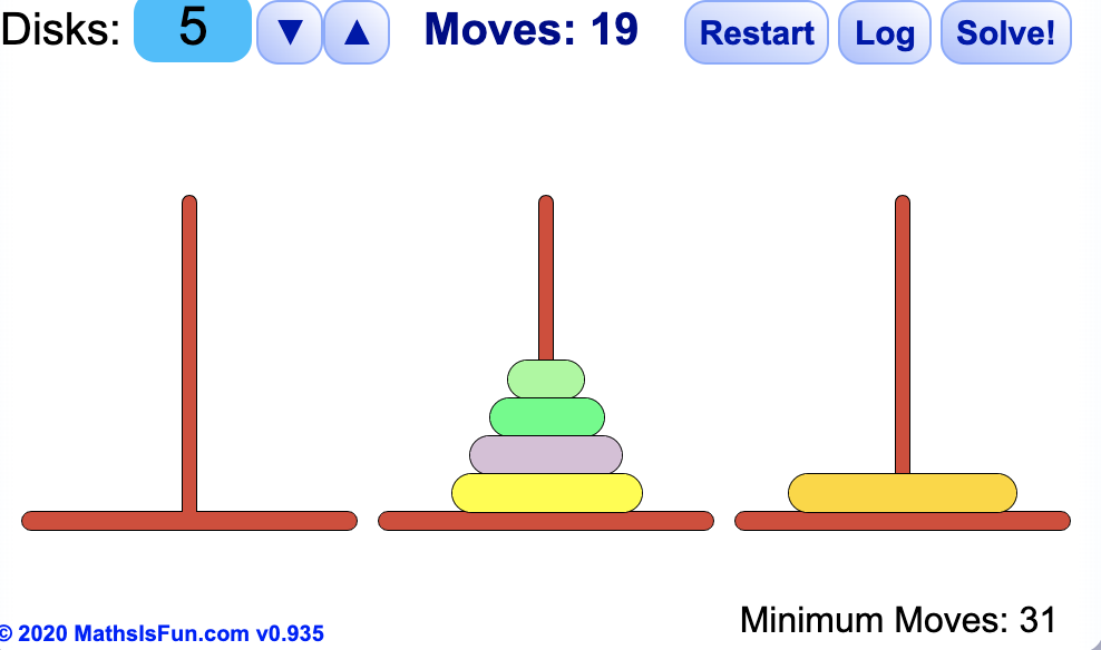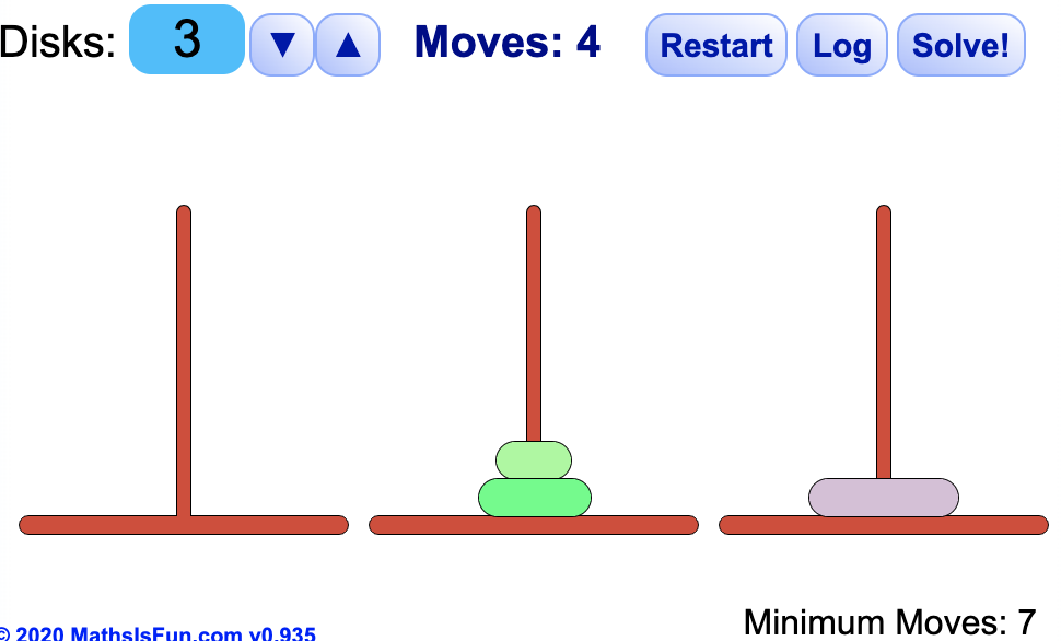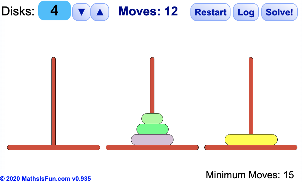 아무리 원판이 많다고 하더라도 항상 제일 큰 기둥을 목표 지점으로 옮겨주세요!!!!!!