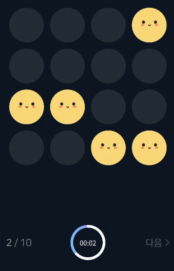 순서와 위치 둘다 맞춰야 하는 게임입니다.